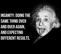 Image result for insanity saying einsteinWe've all heard Einstein's definition of insanity:  Doing the same thing over and over again, and expecting different results.  Sound familiar?